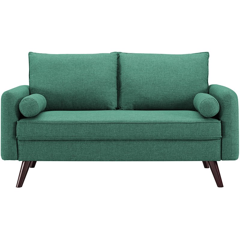 Lillith modern loveseat with upholstered fabric and wooden frame.